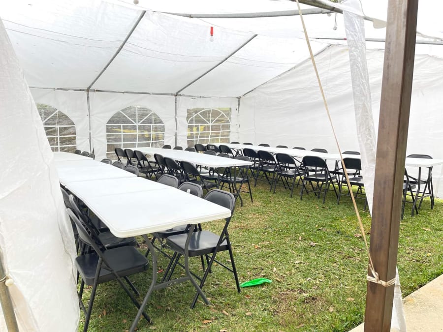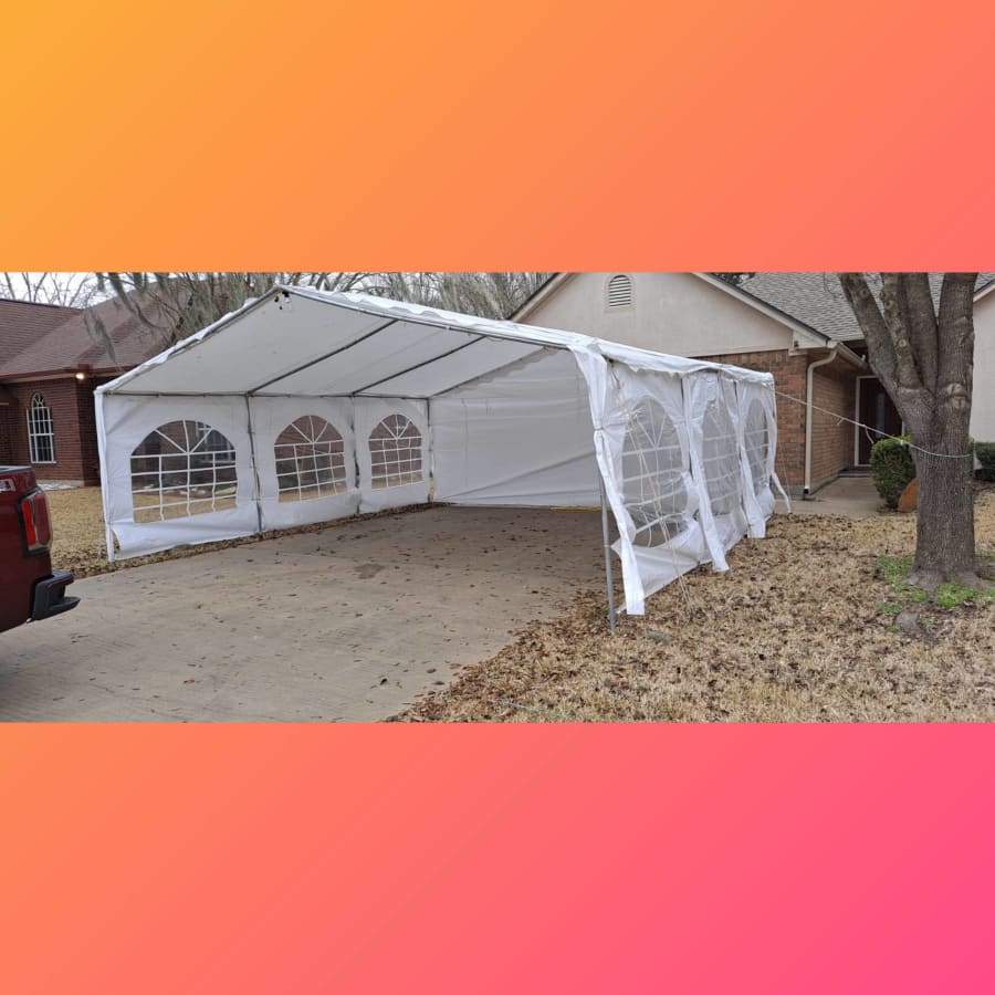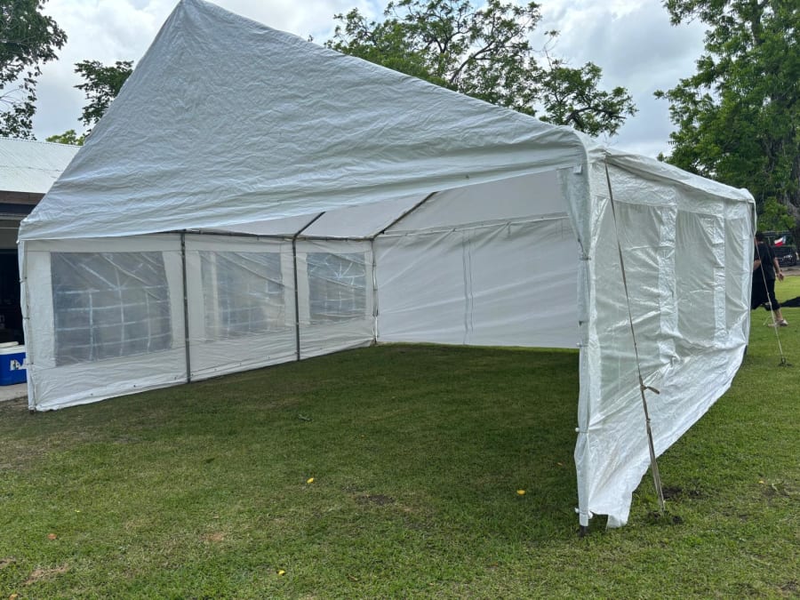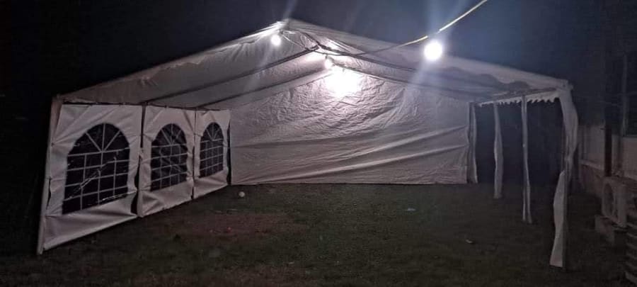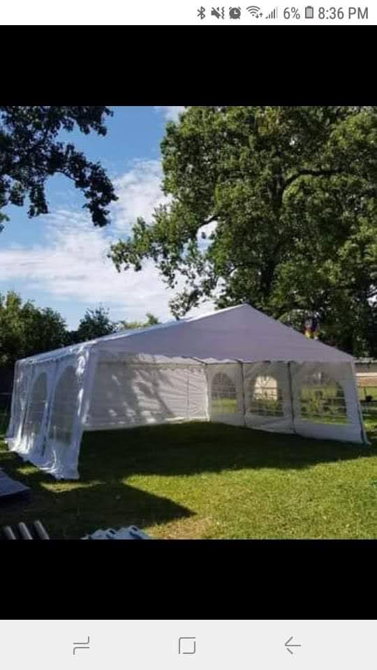 20X20 PARTY TENT SUITABLE FOR UP TO 50 GUESTS ,COMES WITH LIGHTS AND WALLS.