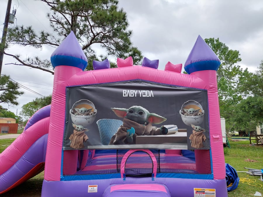Baby Yoda banner for moonwalks,book it alongside your moonwalk rental!